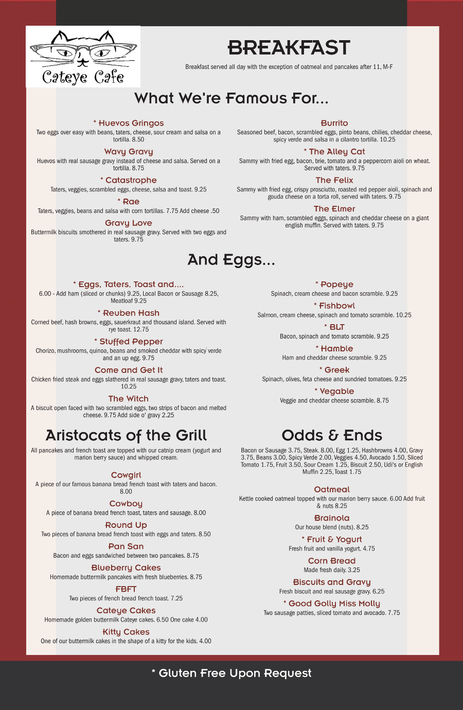 Copyright © 2014 Cateye Cafe, 23 N. Tracy ~ Downtown Bozeman ~ Tel: 406-587-8844